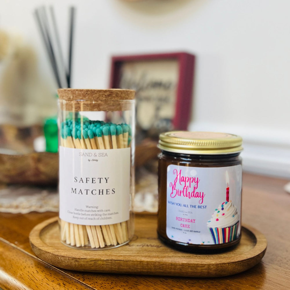 Birthday Candle Gift Sets | Happy Birthday Candle, Safety Matches, and Wooden Tray